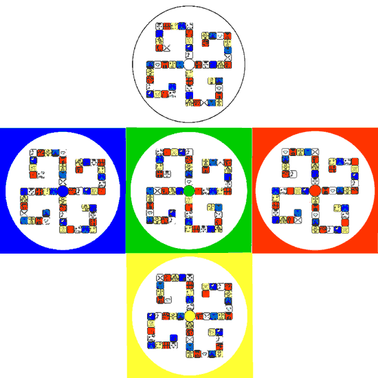 Il y a également des cycles chromatiques : Rouge, Blanc, Bleu et Jaune. Le Vert tient une place particulière. Ces 4 couleurs principales vont proposer des cycles de 4 jours, 4 ans ou 4 Ondes Enchantées, suivant cet ordre :
